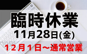 2025/11/28(金)メンテナンス臨時休業のお知らせ。New!!