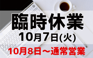 2025/10/7(火)メンテナンス臨時休業のお知らせ。