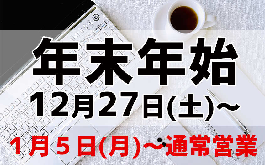 年末年始の休暇:2025年12月27日(土)~2025年1月4日(日)まで